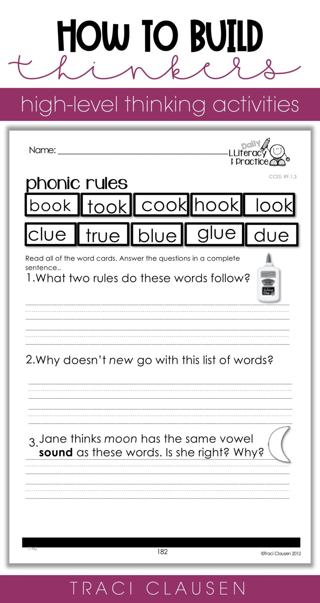 These types of questions are not cut and dry. They ask the kids to EXPLAIN what they know…in complete sentences. It encourages high-level thinking and demands attention and thorough understanding. They must know the reasons behind their learning, understand and demonstrate correct grammar and sentence structure and utilize descriptive language. I not only want them to have a good head start and “leg up” in reading but writing as well.